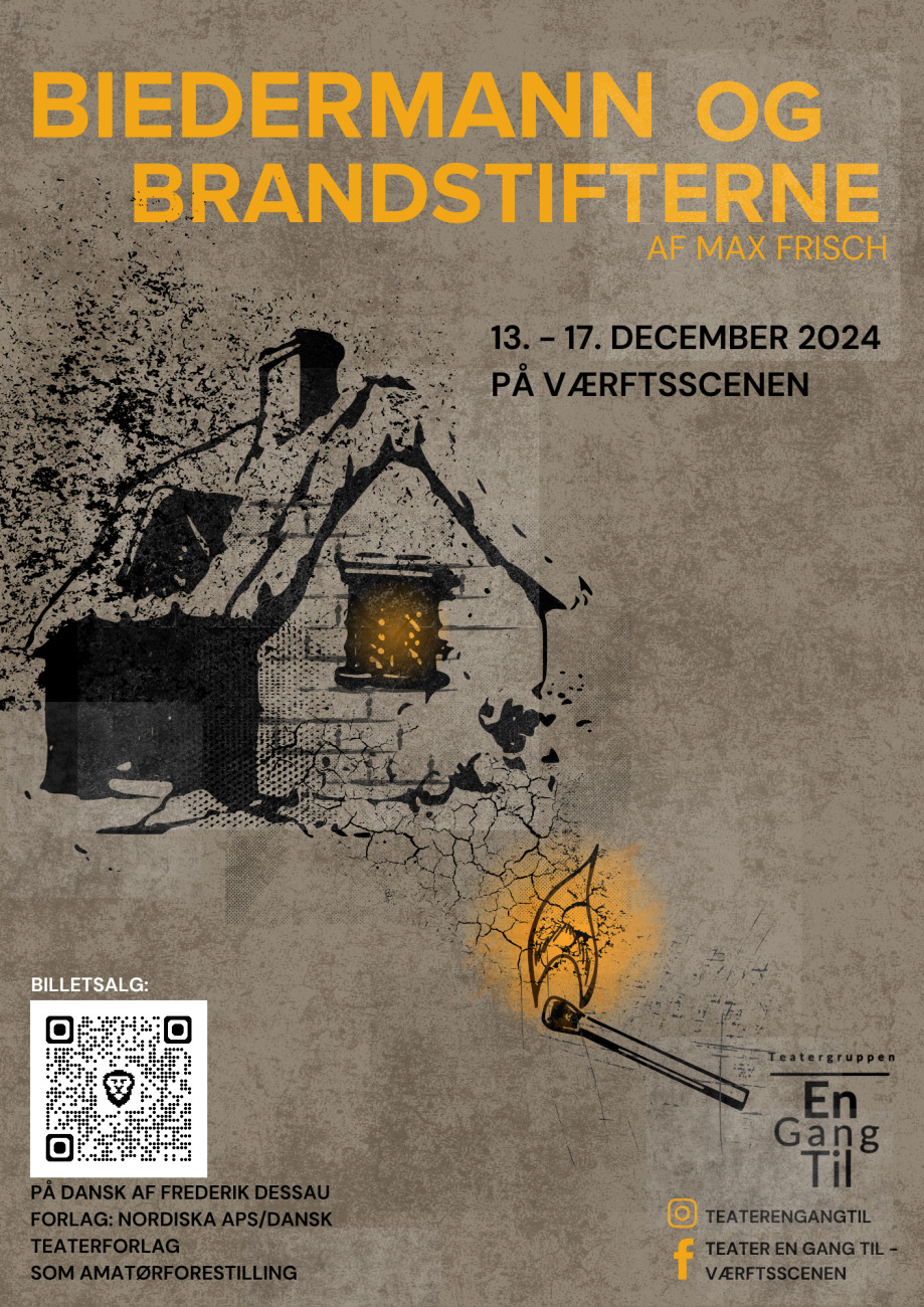 Den tankevækkende forestilling "Biedermann og brandstifterne" handler om den moralske mand Biedermann, der åbner sit hjem for en ung omrejsende, selvom byen er plaget af mystiske brande. Stykket, beskrevet som "et moralstykke uden moral", udforsker, hvordan almindelige mennesker kan blive forført af ekstreme ideologier, og hvordan vi ofte håber på et andet udfald, selv når skæbnen synes uundgåelig.