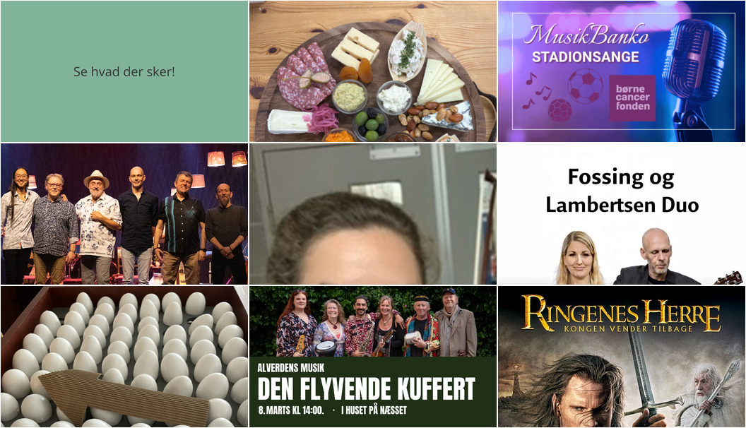 Søndag eftermiddag inviteres du til Huset på Næsset, hvor "Den Flyvende Kuffert" leverer en energifyldt og glædesfuld koncertoplevelse. Tag med på denne musikalske rejse, hvor både lytning og dans er velkomne.